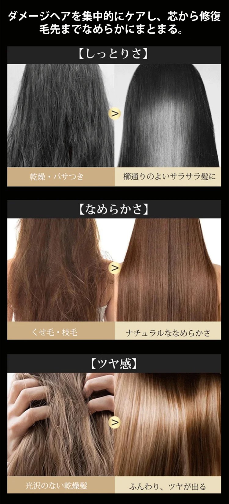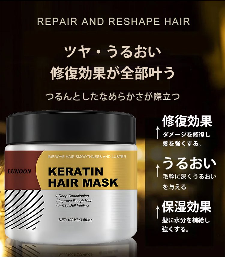ケラチンヘアマスクリペアエッセンス、毛先を保湿し補修します